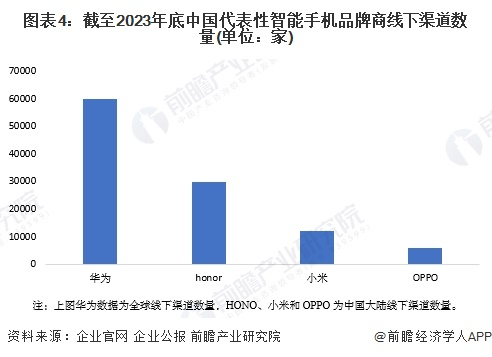 注:上图华为数据为全球线下渠道数量,Hono、小米和OPPO为中国大陆线下渠道数量。