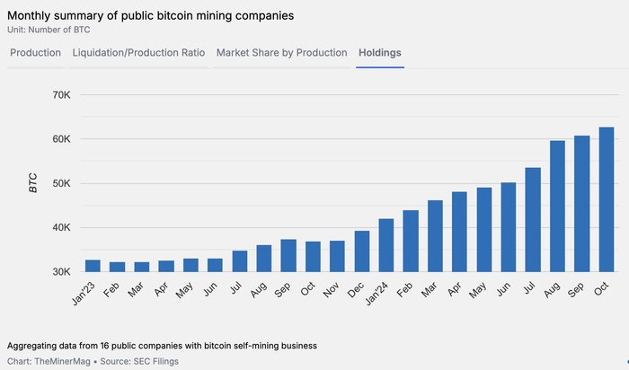 与此同时,北美大的持币机构囤币等同样助推了行情上涨。据TheMinerMag数据,截至10月底仅北美上市矿工就囤币超过62k,此外还有MicroStrategy、贝莱德ETF等机构“大手笔”买入。TheMinerMag分析师表示,比特币机构力量更显著,机构持币从上一个周期(2020年前后)开始就已经成为主流。
