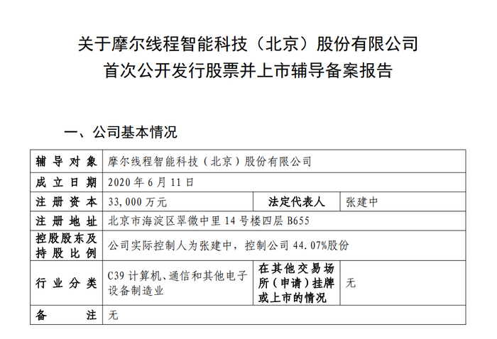 11月12日,证监会官网信息显示,摩尔线程正式办理上市辅导备案登记,于11月6日与中信证券签署辅导协议。