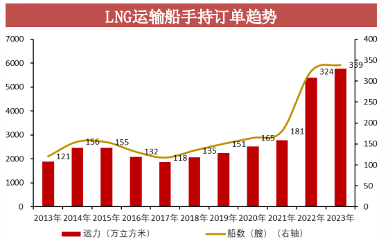 近年来,LNG市场需求十分强劲,LNG运输船在手订单更是迎来了10年以来的历史最高,最晚的交付计划排到了2031年。