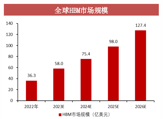 从行业数据看,2022年全球HBM市场规模约为36亿美元,预计2026年有望达到127亿美元,年复合增速近37%。