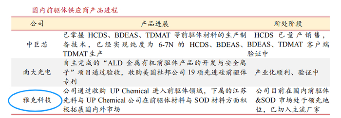 而雅克科技通过收购UP Chemical后,成为国内唯一跻身全球前五的半导体前驱体企业,稀缺性十足,实现国产替代的潜力巨大。