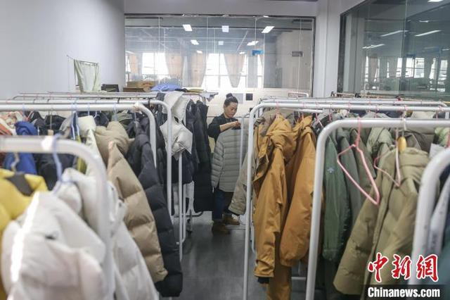 图为11月12日,共青城道木熙服饰有限公司的设计师张玉花正在挑选羽绒服样衣,她在共青城从事羽绒服设计十余年,见证了当地纺织服装产业的转型升级,她表示过去共青城有很多羽绒服代工企业,如今都陆续成立了自己的品牌,整个行业发展得越来越好。中新社记者 刘力鑫 摄