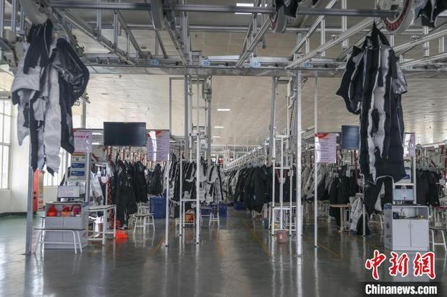 图为11月12日,位于共青城的“鸭鸭”智能制造标准化样板工厂车间。该工厂共拥有六条智能吊挂生产线,相比传统的服装生产线,智能吊挂生产线自动化、智能化程度更高,能够充分保障产品品质,大幅提高生产效率。中新社记者 刘力鑫 摄