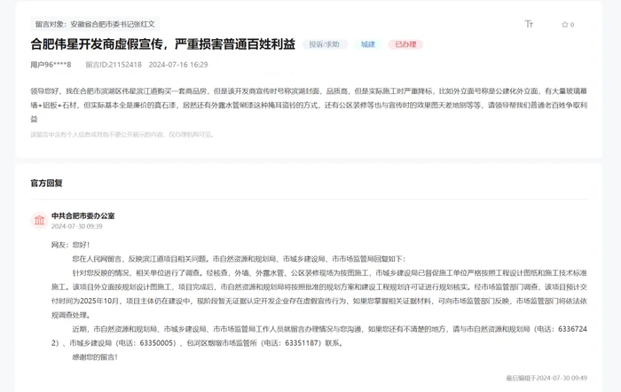瑶海区的“东新壹号”,当时项目的售楼部、销售人员,以及伟星各类公众号都标榜“非高端不壹号”,不少业主冲着高端品质去的。