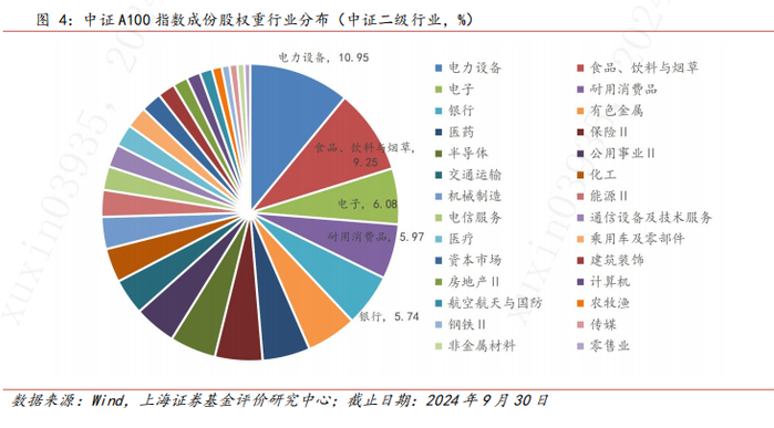 截至2024年9月30日,中证A100指数成份股覆盖全部11个中证一级行业,以及35个中证二级行业中的28个。