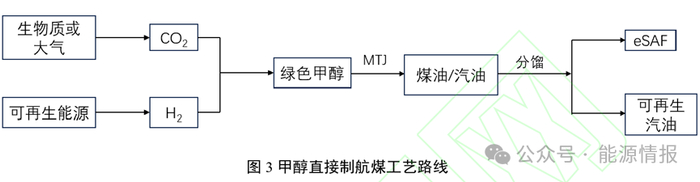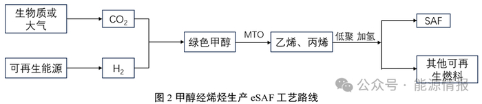 通过绿色甲醇(按照相关标准,合成甲醇的碳来自于生物质或大气捕集,氢来自于可再生能源生产eSAF是除FT路线外又一新兴技术路线。甲醇制航煤(MTJ)也可分为两条路线,分别为甲醇-烯烃-航煤的间接路线和甲醇-航煤直接路线,前者主要以HoneywellUOP公司为代表,后者以Topsoe和ExxonMobil公司为代表。