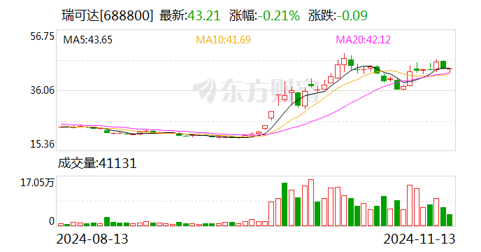 瑞可达是一家专注于连接器产品制造的高新技术企业。新能源汽车相关业务为公司核心收入。今年前三季度,公司实现营业收入15.89亿元,同比增长52.75%;归属于上市公司股东的净利润1.06亿元,同比增长10.6%。对于业绩的增长,马剑对《证券日报》记者表示:“主要是报告期内,公司新能源汽车相关业务连接器产品增长所致。”