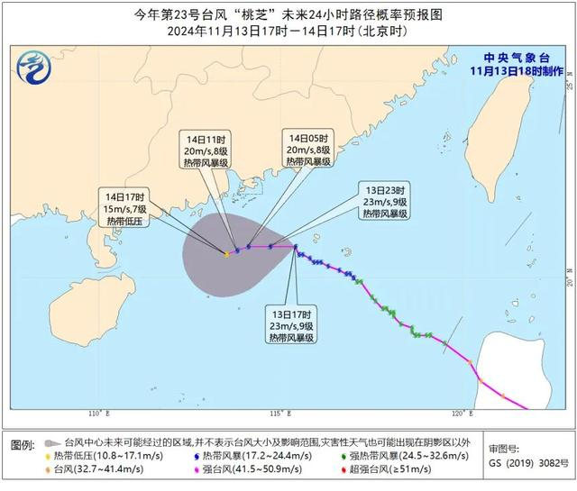 根据最新预报,台风“桃芝”已经减弱为热带风暴级,明天将转向西偏南方向移动,强度逐渐减弱。受其影响,南海北部等海域还将出现大风天气。此外,由于“桃芝”叠加副热带高压边缘水汽输送,明天,华南到江南还会有一条弧形雨带,广东、江西、浙江等地将有中到大雨。