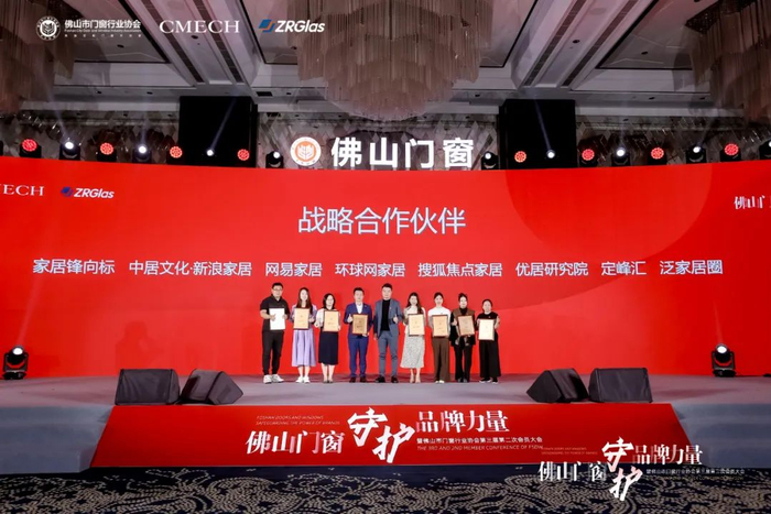 同时,为了加强与媒体之间的互动与合作,为宣传和推广佛山门窗品牌助力,佛山市门窗行业协会秘书长张聪也为中居文化·新浪家居、网易家居、环球网家居、搜狐焦点家居、优居研究院、定峰汇、泛家居圈、家居锋向标等8家媒体和机构颁发了战略合作伙伴牌匾。