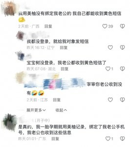 此外,记者注意到,有网友分享自己在美柚APP上记录经期后,伴侣也会收到不良短信。还有一些网友提到,自己注册了孕宝APP后也收到了相关信息。
