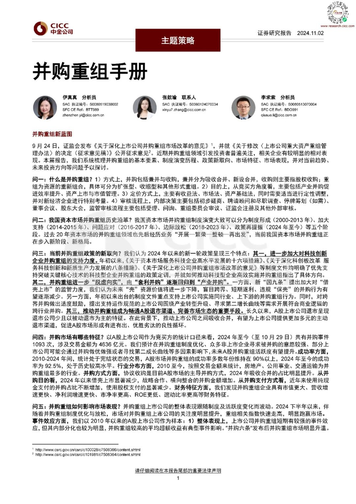 重磅!上海支持上市公司并购重组。中金《并购重组手册》