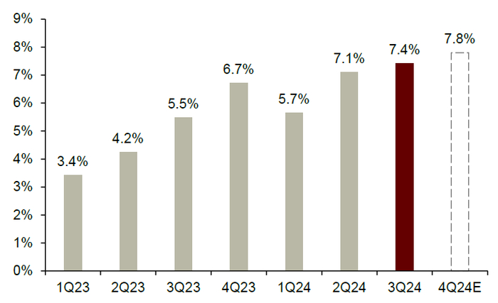 东南亚外卖和出行业务继续受益于旅游复苏。根据 Google Bain和Temasek报告,外卖和出行行业预计在2024年和2030年将达到263亿美元和600亿美元,年复合增长达 14.7%。随着疫情影响逐渐消退,我们预计2025年东南亚旅游业将恢复到2019年水平。旅游业全面复苏将驱动区域内按需服务增长。Grab已预见这一趋势,并推出了多项新功能,如“saver deliveries”(节省配送费用,在2Q24占到全部交易量的28%)和“dine-out”(支持用户预订外出就餐),这些创新不仅为消费者提供了更多选择,还帮助Grab提升用户活跃度、增加市场渗透率,并强化其在竞争激烈的按需服务市场中的地位。