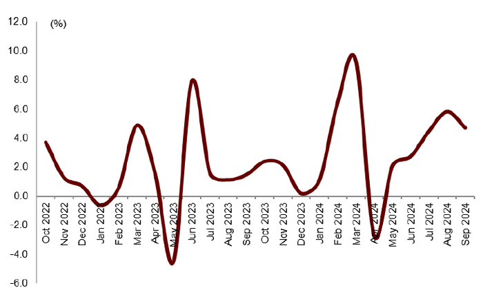 ► 宏观经济:1)政策利率有望持续下调:10月16日,菲律宾央行行长Eli Remolona表示,菲律宾降息预期将根据市场数据评估调整,但仍预期菲律宾有望于2024年12月再次将政策利率下调25个基点。而美联储的进入降息周期与本土通胀率缓解有望为2025年宽松的货币政策创造条件;2)通胀压力有望缓解:菲律宾2024年9月通胀率舒缓至1.9%,菲律宾央行将2024年通胀预测从3.3%下调至3.1%,反映出大米、蔬菜和谷物价格上涨放缓。预期2025年通胀率将保持在菲律宾央行2%-4%的目标范围内。