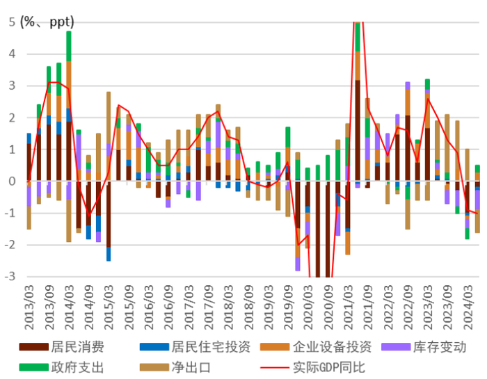 欧元区经济在2024年有小幅恢复。从经济各部门的支出端来看,前两个季度GDP的增长主要仍然来自外需贡献,内需的投资项仍是拖累。消费贡献虽然为正,但整体恢复不及预期。