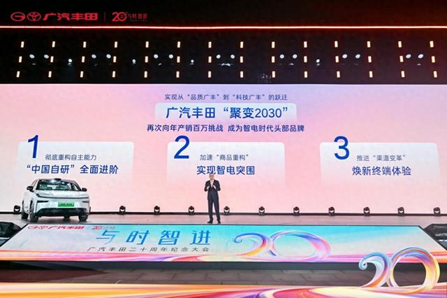 11月13日,广汽丰田举办“与时智进”20周年纪念大会,发布了面向未来的战略转型计划。在合资2.0体制下,广汽丰田启动“聚变2030”战略,旨在年产销重回百万台规模,并朝着智电时代头部品牌的目标进发,实现从“品质广丰”到“科技广丰”的跨越。为此,广汽丰田将展开全体系构造改革,向“全方位自立化”目标迈进。其中,深化“中国自研”、加速“商品重构”和推进“渠道变革”等行动计划构成了战略转型的核心支柱。