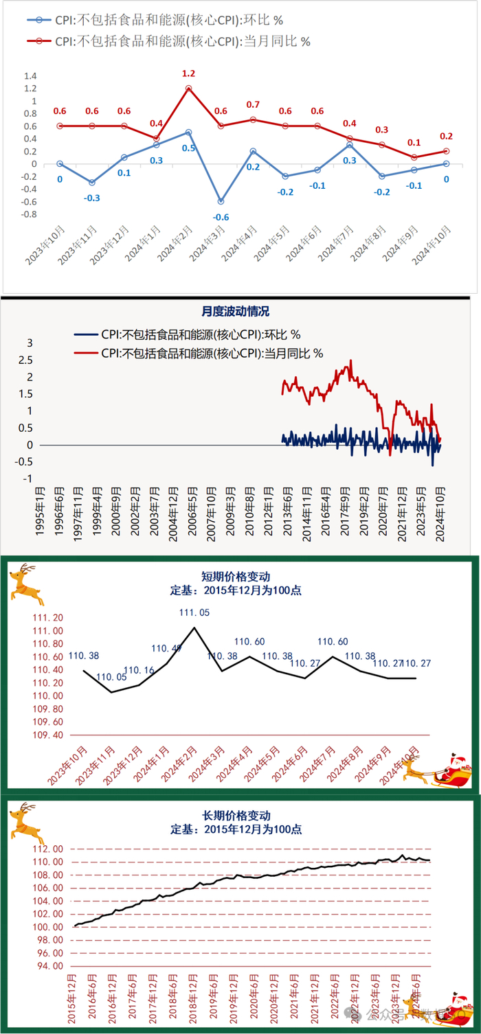 根据数据GO算法,核心CPI同比涨0.2%,环比持平,10月价格110.27点,前10月核心比2023年上涨0.40%。