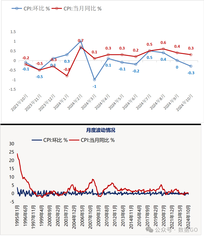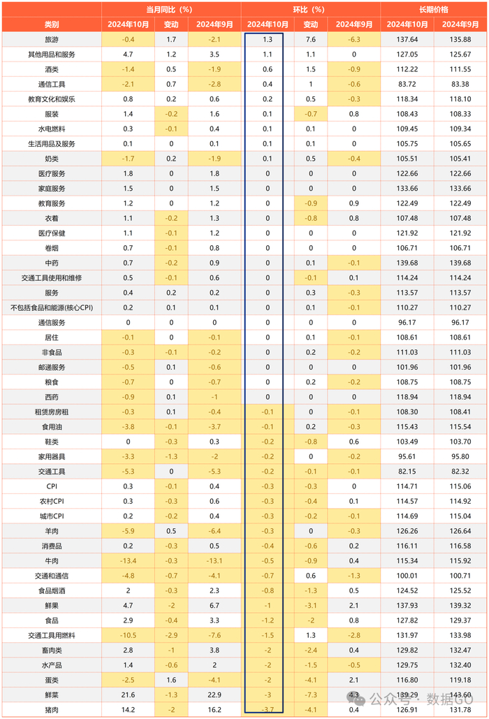 2024年10月份,全国居民消费价格(CPI)同比上升0.3%,同比涨幅连续9个月为正;环比下跌0.3%,时隔3个月,再次转负。