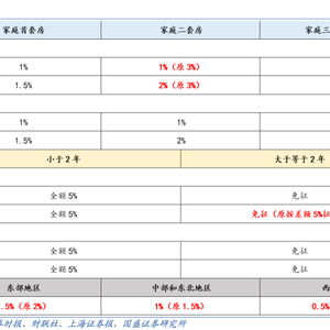 3、本轮税收政策调整主要集中在契税和增值税方面,契税调整了税率划分标准(一线城市二套房契税有调降),对一线城市的普宅和非普宅挂钩的增值税做了调整。此外,还将各地区土地增值税预征率下限统一调降0.5个百分点。