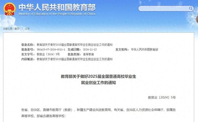 据央视新闻消息,11月14日,教育部、人力资源社会保障部联合召开工作会,部署做好2025届高校毕业生就业创业工作。据统计,2025届全国普通高校毕业生规模预计达1222万人,同比增加43万人。