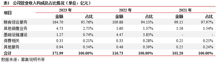 业务及收入结构:(1)粮食综合服务:泰安产投最主要的收入来源,主要为玉米、小麦采销,上下游合作对象遍布全国,较为分散。(2)基础设施建设:传统代建业务。(3)其他销售:主要为工业材料制造至销售,包括药用玻璃包装研发至销售、纤维绳索生产至销售,2023年该业务收入增长较快。整体看,泰安产投收入集中于粮食综合服务业务,上下游交易对手分散在全国各地,业务市场化属性明显。