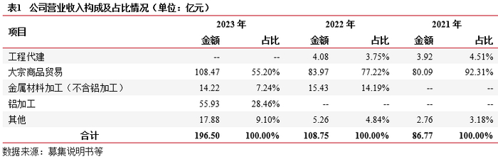 总结:收购上市公司常铝股份,逐渐完善产业链布局,基本为市场化业务,代建业务规模较小。