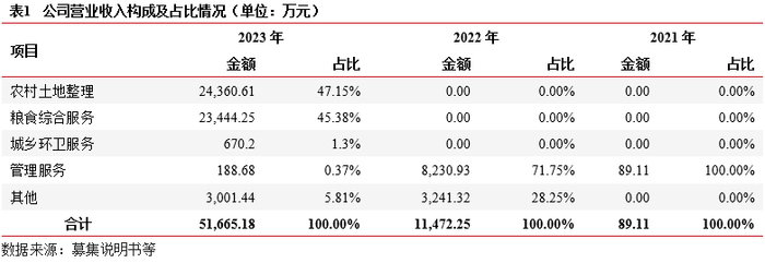业务及收入结构:(1)农村土地整理(耕地占补平衡指标):(2)粮食综合服务:糯玉米订单农业、小麦收购、订单式玉米购销业务。(3)城乡环卫服务:在邹平实施城乡环卫一体化项目。整体看,山东财金乡村振兴围绕农业、农村开展业务。
