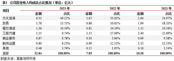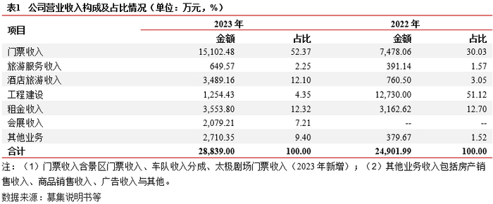 业务及收入结构:主营业务分为四大板块:景区运营板块、陵园服务板块、餐饮住宿服务板块以及旅行和客运服务板块。其中,(1)景区运营板块包括景区服务、索道缆车服务业务,受旅游出行受限影响,2022年该板块业务受到较大冲击,2023年业务规模有所恢复。(2)陵园服务板块的殡葬收入占比超过95.00%,墓穴租赁及管理费收入占比较低。(3)餐饮住宿服务板块、旅行及客户服务板块收入的占比均较低整体看,公司收入结构集中,基本为市场化业务。