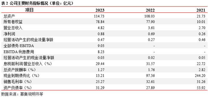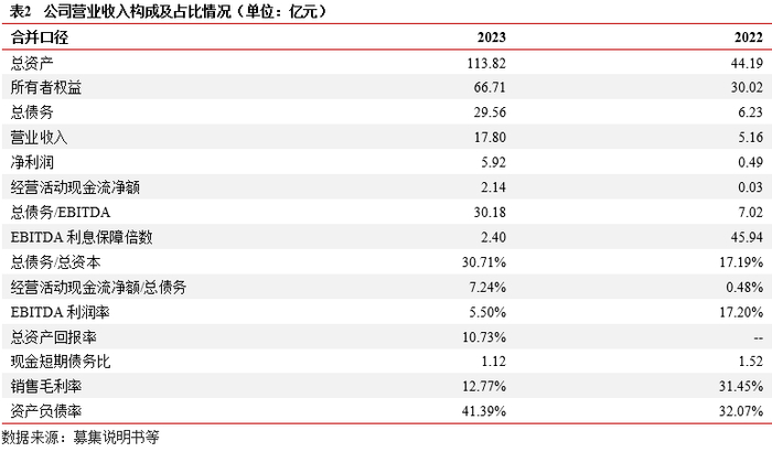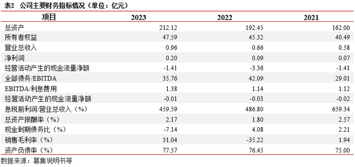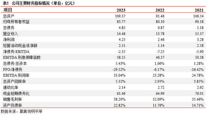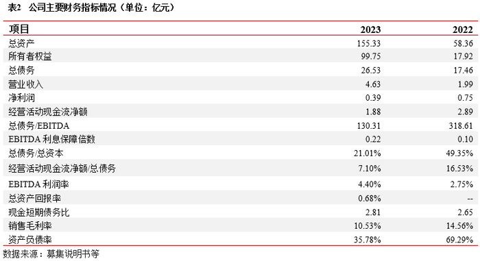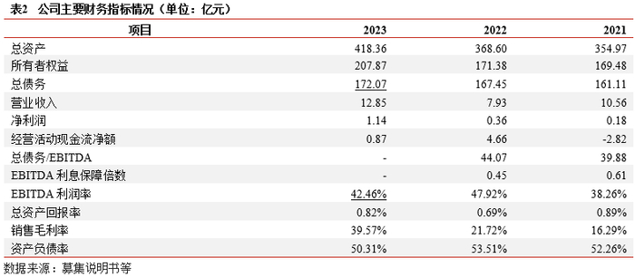 财务结构:2023年末,公司主要资产为计入投资性房地产的用于出租的仙桃数据谷项目,公司仙桃数据谷项目分期建设,主要计入投资性房地产(129.24亿元)及在建工程科目(14.58亿元),前述科目资产占总资产比重约70%。