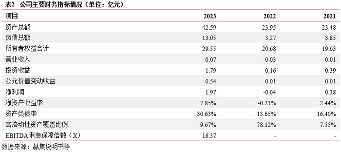 财务结构:公司资产以股东财金集团注入的股权资产及公司成立后投资的项目为主长期股权投资、其他权益工具投资为主,占比超过87%,资产结构符合产业类主体要求