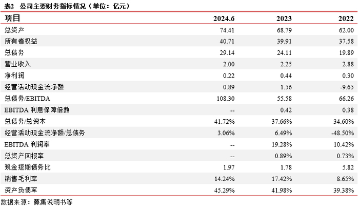 财务结构:公司资产主要由应收款项(与迎江区政府和国企的往来款,8%)、存货(迎江区部分基础设施建设项目的工程投入成本及少量贸易业务的库存商品,13%)、其他权益工具投资(对外股权投资业务产生,15%)、投资性房地产(用于出租的产业园区内的办公楼、标准化厂房,18%)和无形资产(砂石经营权等,21%)构成。整体看资产结构大致符合产业类主体要求