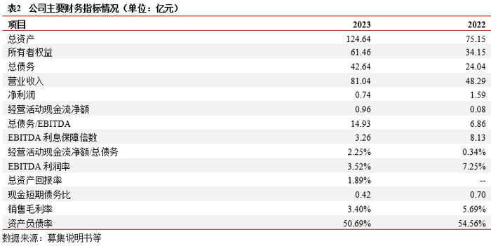 (3)财务特征:以2023年盈利能力数据看,整体仅一家主体亏损,其余主体实现不同程度盈利,销售毛利率超30%的主体数量达到五成;从债务特征看,有息债务规模相对不大,且以银行类融资为主,经营性债务主要集中于同市场上游供应商账款。现金流特征上,近六成主体经营活动现金流净额为正,净流入规模主要集中于0-5亿元。