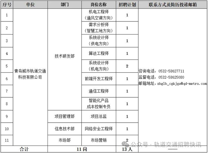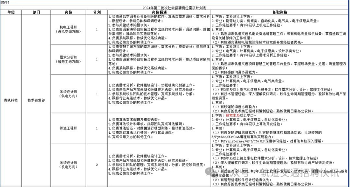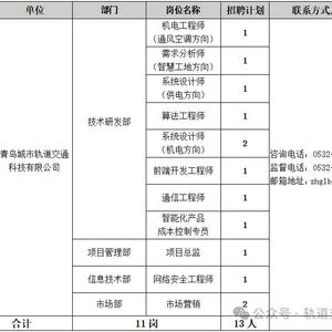 青岛城市轨道交通科技有限公司2024年第二批次社会招聘公告