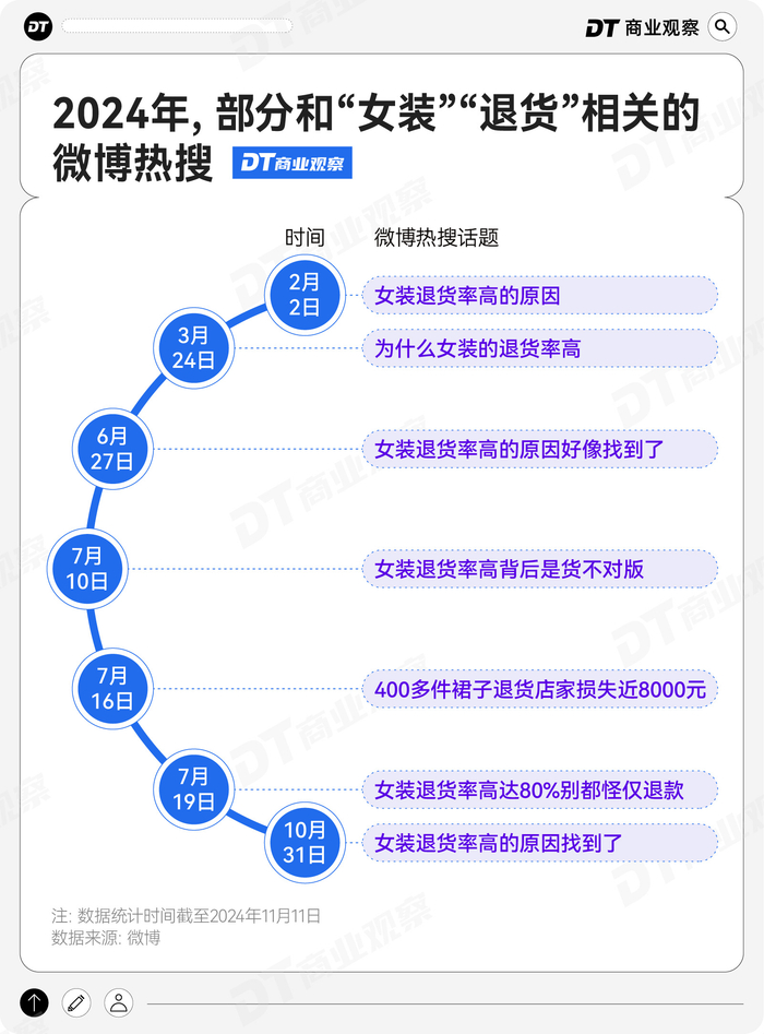 事实上,今年每隔一段时间,社交平台上就会出现和“女装退货”相关的热搜话题。