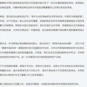 11月14日,亦有网传信息称,辉瑞中国已发布内部辟谣邮件。其称:“近期媒体对我们医院急症业务的不实报道可能引发了一些不必要的疑虑和担忧。希望借此机会做出澄清,并重申医院急症业务在中国的战略重要性以及我们坚定的承诺……对于不实的媒体猜测,辉瑞不予评论,但我向大家保证,目前公司并未做出任何相关的战略调整的决定。”