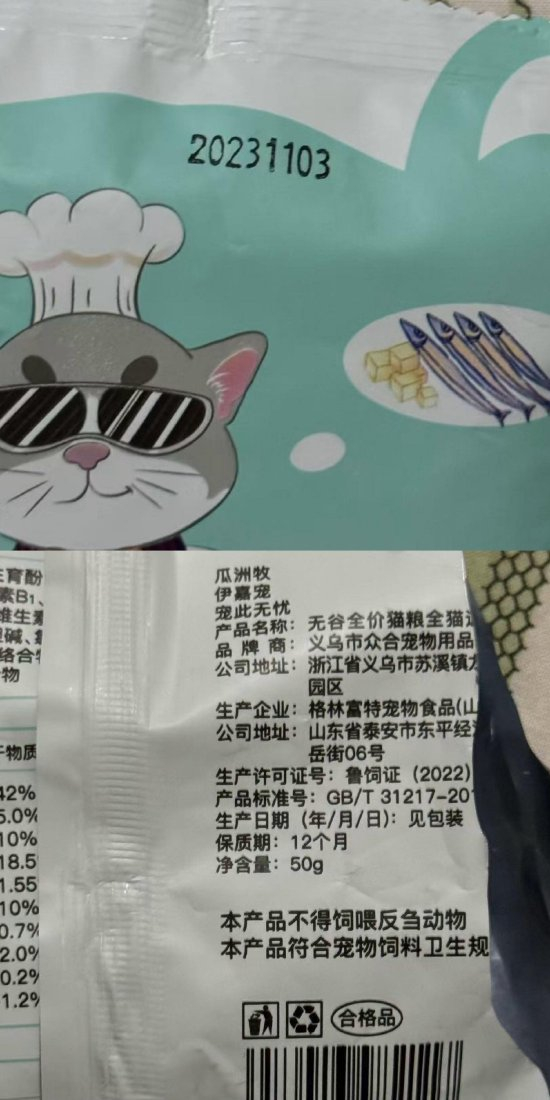河北的高先生11月9日在天猫超市平台下单了一款猫粮,11月11日收到猫粮后就喂了小猫,小猫吃完之后出现了呕吐的状况。他检查发现,猫粮散发着臭味,并且上面标明的生产日期是2023年11月3日,保质期为12个月,在发货的11月9日时就已经过期好几天了。