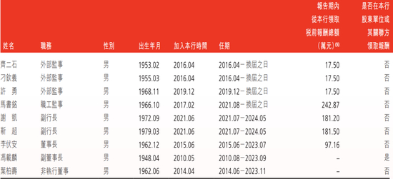 对比来看,作为执行董事兼副行长的杜刚、赵志宏2023年度分别从渤海银行领取薪酬209.07万元、184.92万元,时任副行长谢凯、靳超(已于2024年7月辞职)分别领薪181.20万元、181.50万元。