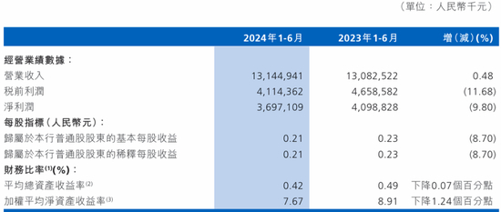 2024年上半年,渤海银行实现营业收入131.45亿元,同比上涨0.48%;实现净利润36.97亿元,同比下降9.80%。可以看出,渤海银行已经处于“增收不增利”的境地。同时,该行的营收增长率也处于较低水平。