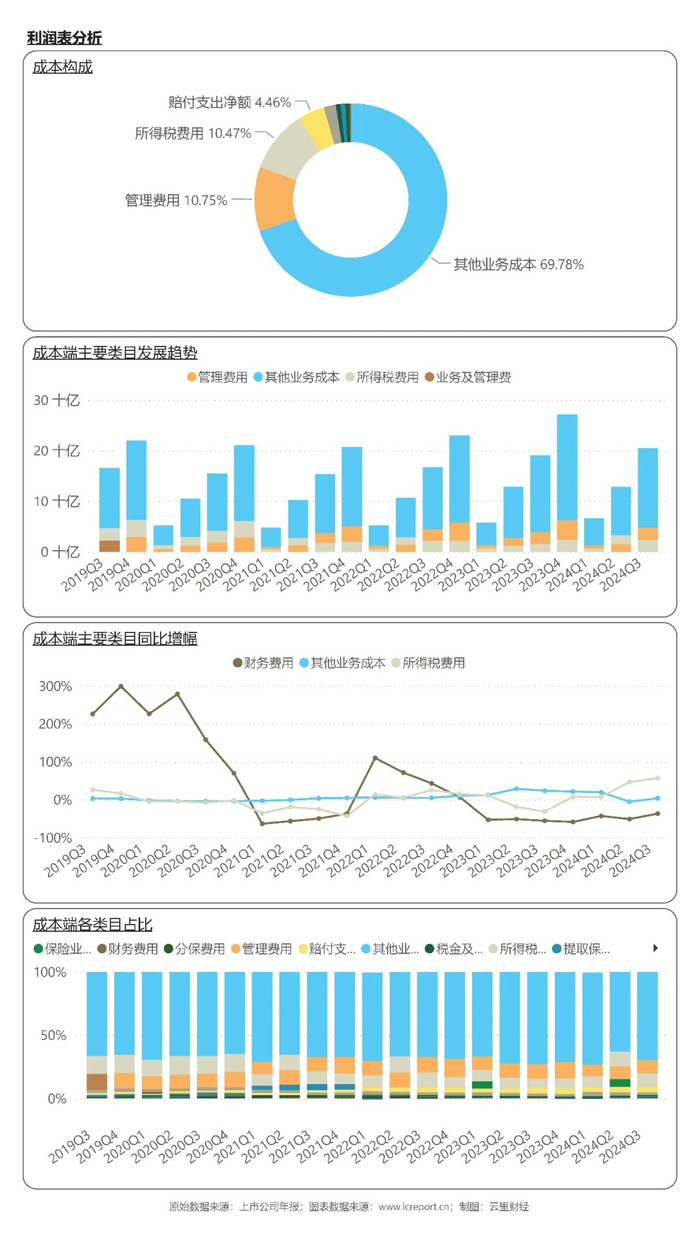 在成本端,中油资本的主要成本包括其他业务成本(占比69.78 %)、管理费用(10.75 %)和所得税费用(10.47 %)。