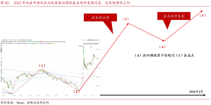 从内部结构来看,9月24日以来的权益市场拉升较快,从时间维度来看不足以支撑(3)浪走完,当前或仍处于推动(3)浪的内部结构中,或进步一走出延长浪。对应基本面来看,2025年或经历政策验证期到基本面修复期过渡,总体趋势性上行。