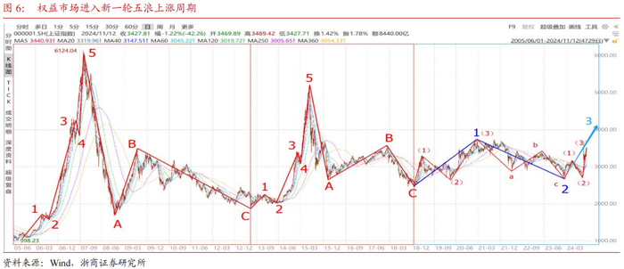 综上,2024年上证指数及国债期货均处于新的五浪周期中,而10年国债期货或处于大4浪中的子浪(B)调整末端,权益市场或处于大3浪的子浪(3)上行通道中,2025年各资产走势仍需结合宏观基本面、财政及货币政策、机构行为等综合判断。