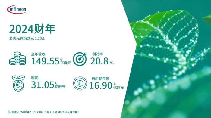 对于英飞凌来说,2024财年的业绩整体不如预期。2024财年营收为149.55亿欧元,同比下降8%;利润为31.05亿欧元;利润率为20.8%;调整后每股收益1.87欧元;自由现金流为2,300万欧元,调整后的自由现金流为16.90亿欧元。公司预计2025财年营收将比上一财年略有下降,调整后的毛利率预计在40%左右,利润率为14%~19%,预计投资额约为25亿欧元。
