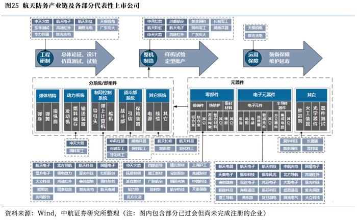 ② 航天防务板块将成为2025年且贯穿“十五五”时期中,边际改善和潜在增长持续性都具有较大比较优势的军工细分领域之一。作为兼具信息化及消耗性属性的国防安全“必需”装备,航天防务产业中长期需求确定。在军工即将进入“十四五”末年以及临近2027年建军百年目标之际,航天防务产业需求侧的波动只是暂时的。在底层需求增速修复和产业“高景气”的双轮驱动下,航天防务产业有望出现更高的行业底层增长弹性。