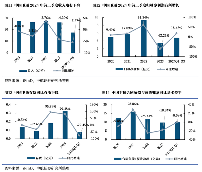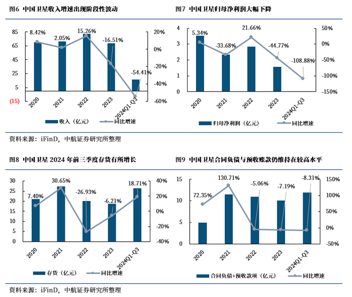 ① 2024年前三季度,航天防务产业的需求阶段性波动仍存在,且短期(2024年四季度)需求或仍难以兑现至利润表;