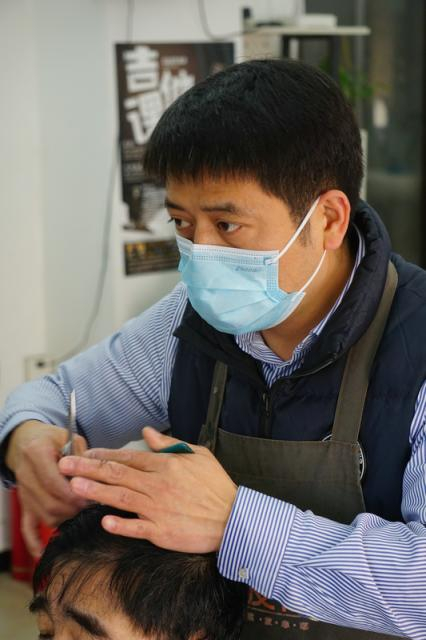 店里另一个顾客,是上海来京出差的女士,她从网上找到了这家便民理发店。“很接地气,没有那么多花里胡哨的项目和名头。我今天赶时间,就想简单修理一下,这边半小时,40块钱就解决了。”