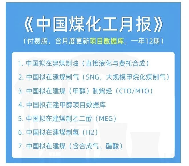 《中国新型煤化工月报》(付费版,含7个月度更新项目数据库,一年12期)