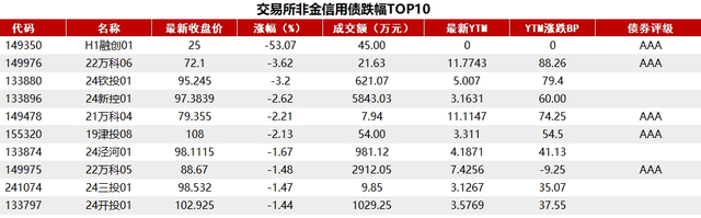 据Choice 数据统计显示,今日交易所市场非金信用债跌幅排行前五的分别是:H1融创01、22万科06、24钦投01、24新控01、21万科04。具体如下: