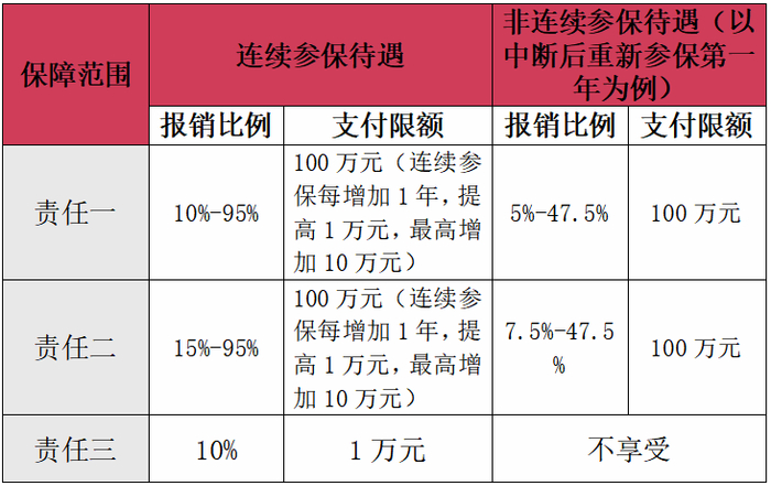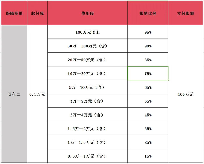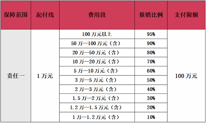 责任一和责任二分别设置起付标准和梯次报销比例