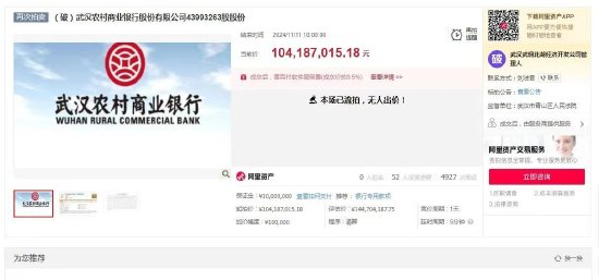 柒财经注意到,今年以来,包括徽商银行、山西银行、赣州银行等不少中小银行的股权被拍卖,但和武汉农商行一样,很多都是剃头挑子一头热,股权在挂牌后,鲜有人问津,甚至出现流拍。