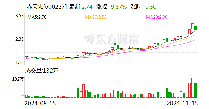 2024年前三季度,赤天化实现收入17.05亿元,归母净利润-3461万元。